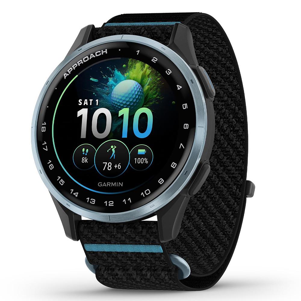 - Garmin Approach J1 Cloud Blue Aluminum Bezel with Black/Azure ComfortFit Fabric Band