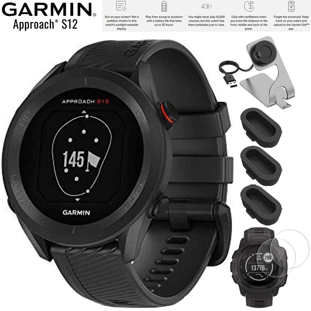 Garmin Approach S12 GPS Golf Watch 42k+ Courses Black with Charging Dock Bundle