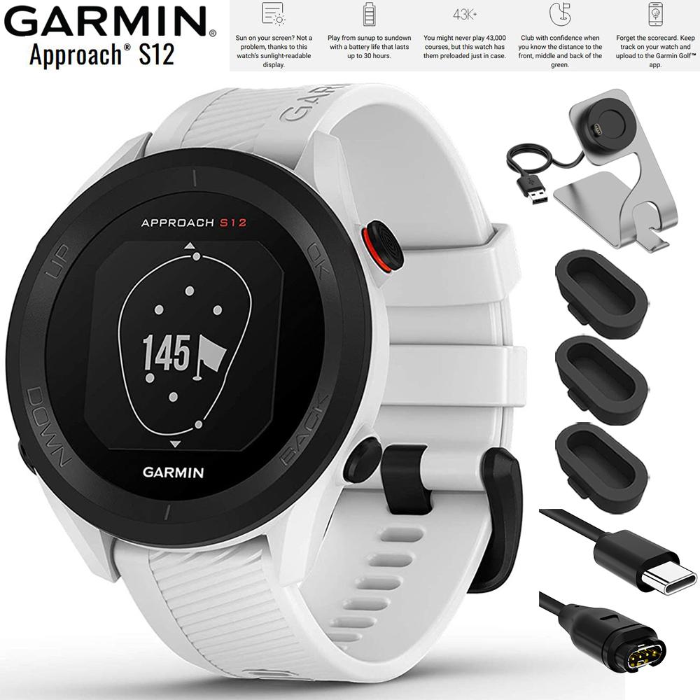 Garmin Approach S12 GPS Golf Watch 42k+ Preloaded Course White + Charging Bundle
