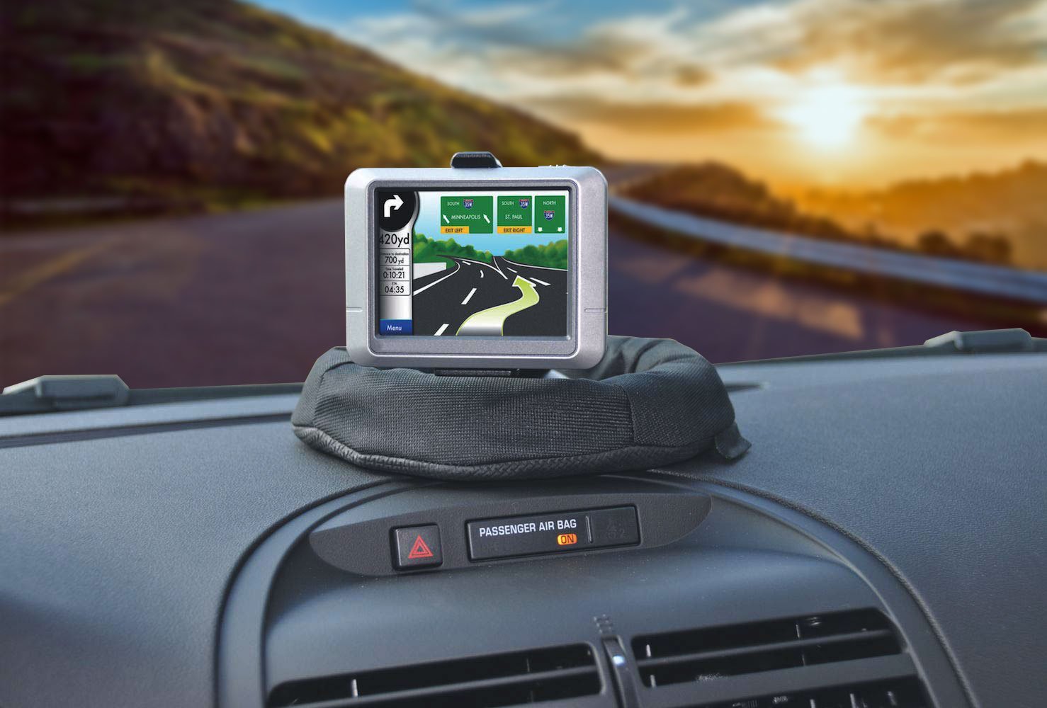 The Deco Gear Universal Weighted GPS Nagivation Dash-Mount secures and protects your GPS. This product provides a solid mounting base that enables you to convert your windshield mounted device into a dash mounted device. No installation required, just place it on your dash and go! It's bean bag body adjusts to uneven or textured surfaces