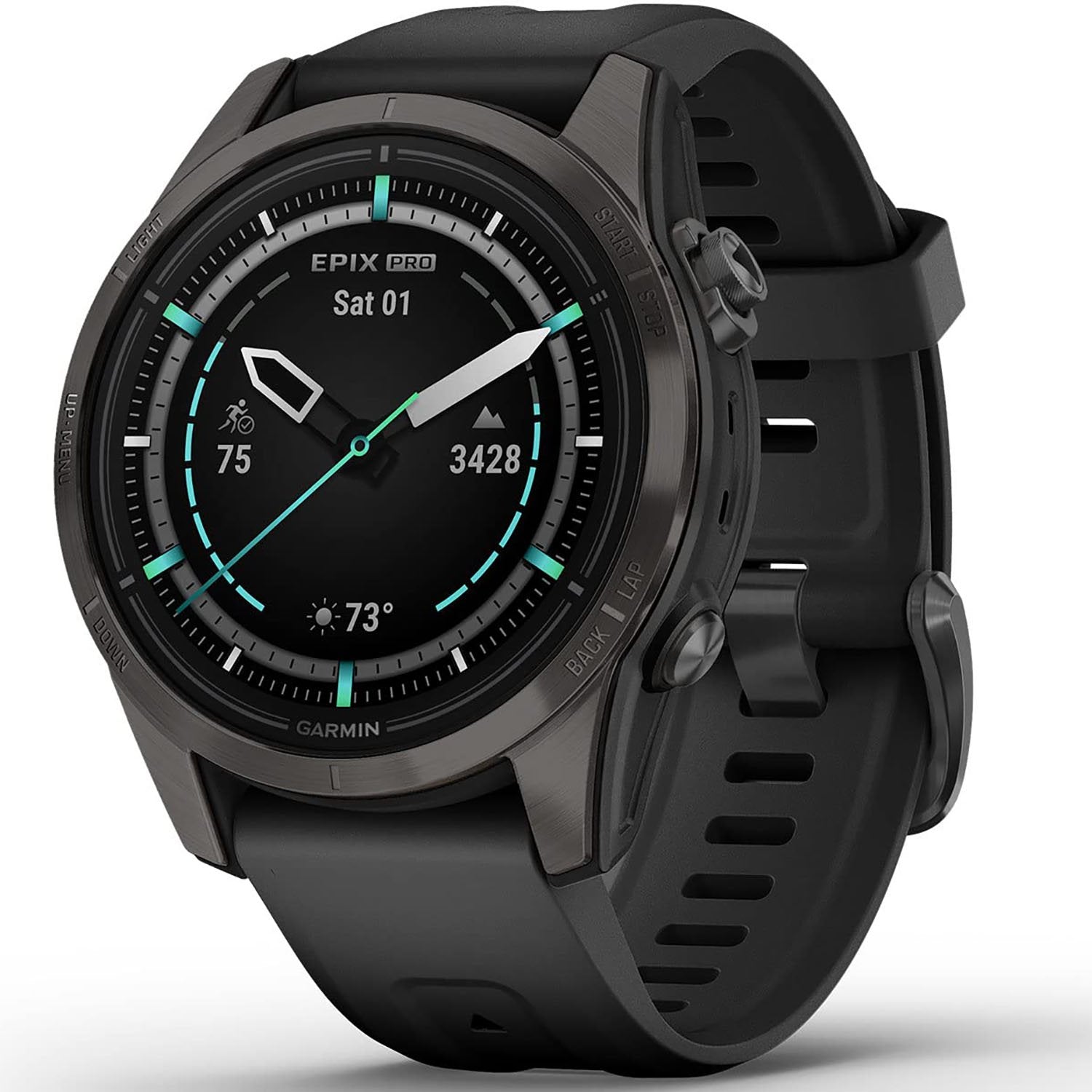 The resilient athletic design features a bright 1.2” AMOLED display, responsive touchscreen, traditional buttons and 42 mm fiber-reinforced polymer case with a steel bezel and rear cover. The watch is tested to U.S. military standards for thermal, shock and water resistance.