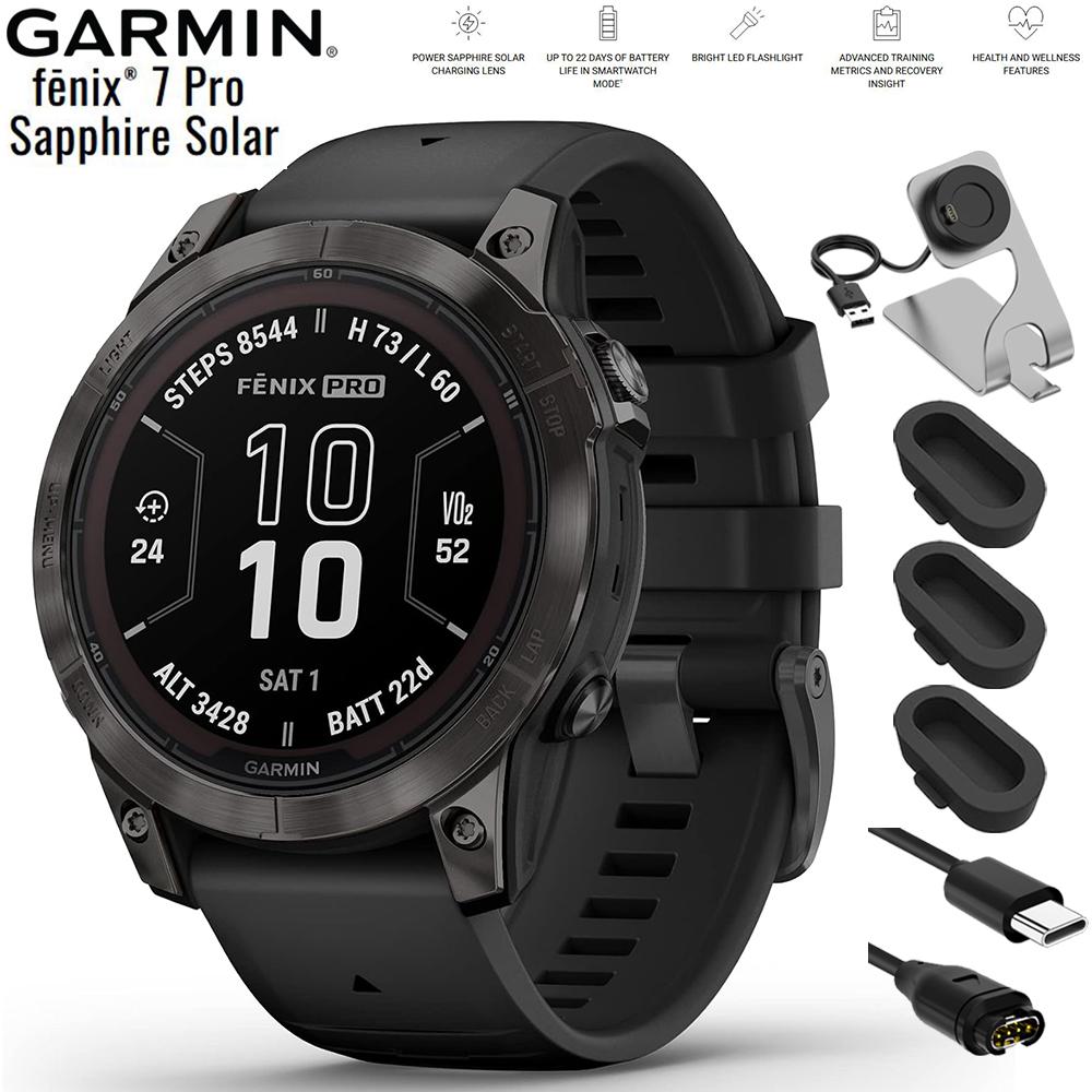 Garmin fenix 7 Pro Sapphire Solar, GPS Smartwatch Black + Charging Dock Bundle
