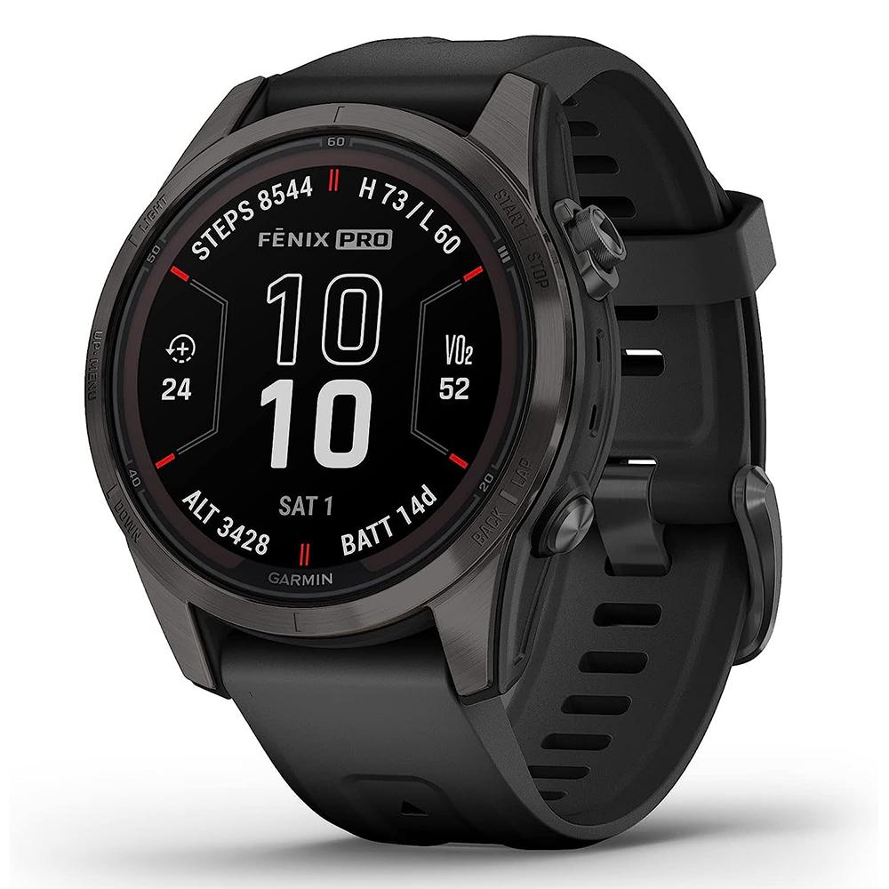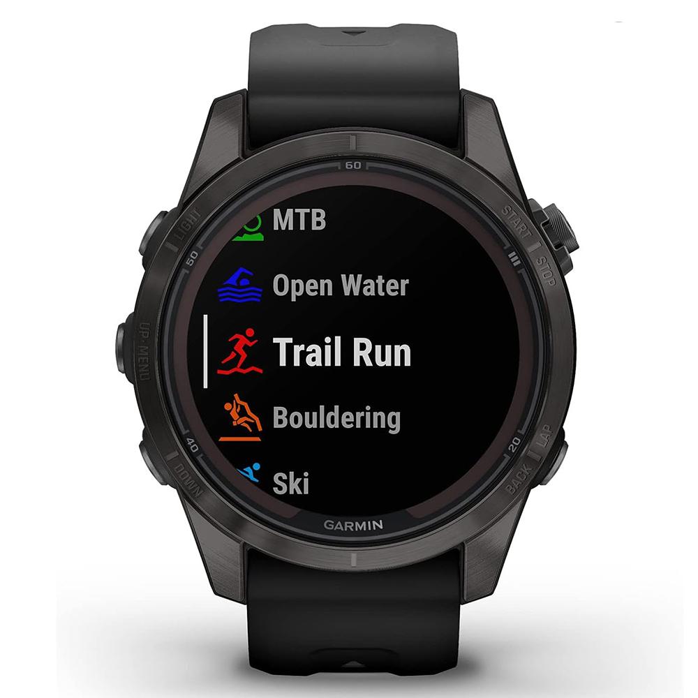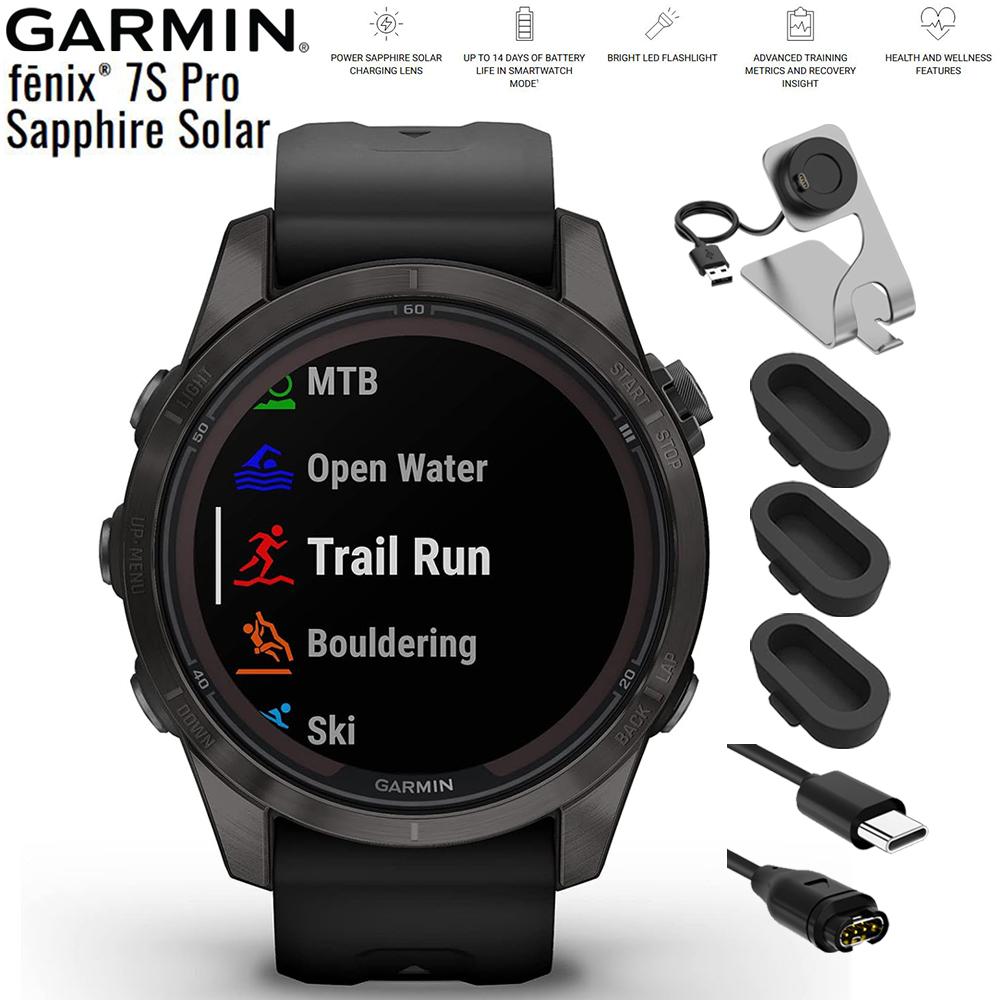 - Garmin fenix 7S Pro Solar, Sapphire, Carbon Gray DLC Titanium, Black