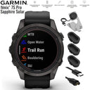 Garmin fenix 7S Pro Solar, Sapphire, Gray DLC Titanium, Black + Charging Bundle