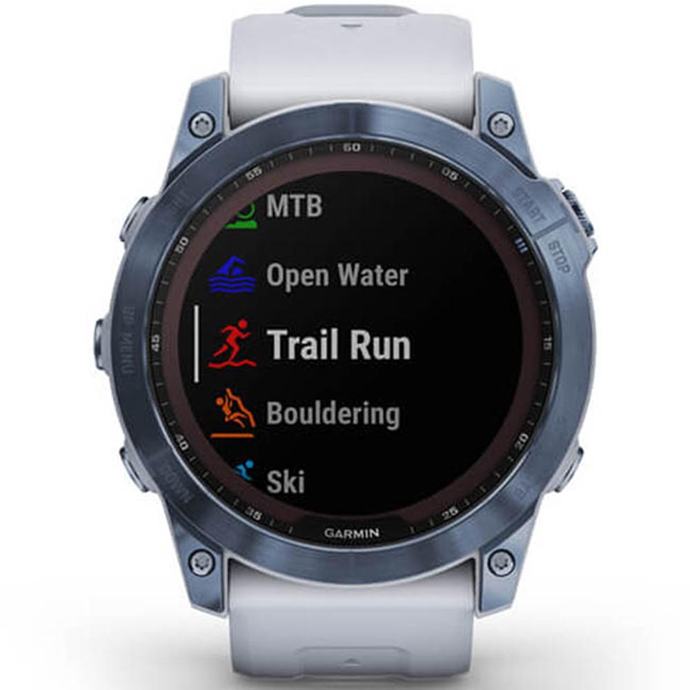 Garmin Fenix 7X Sapphire Solar Smartwatch Mineral Blue Titanium with Whitestone Band