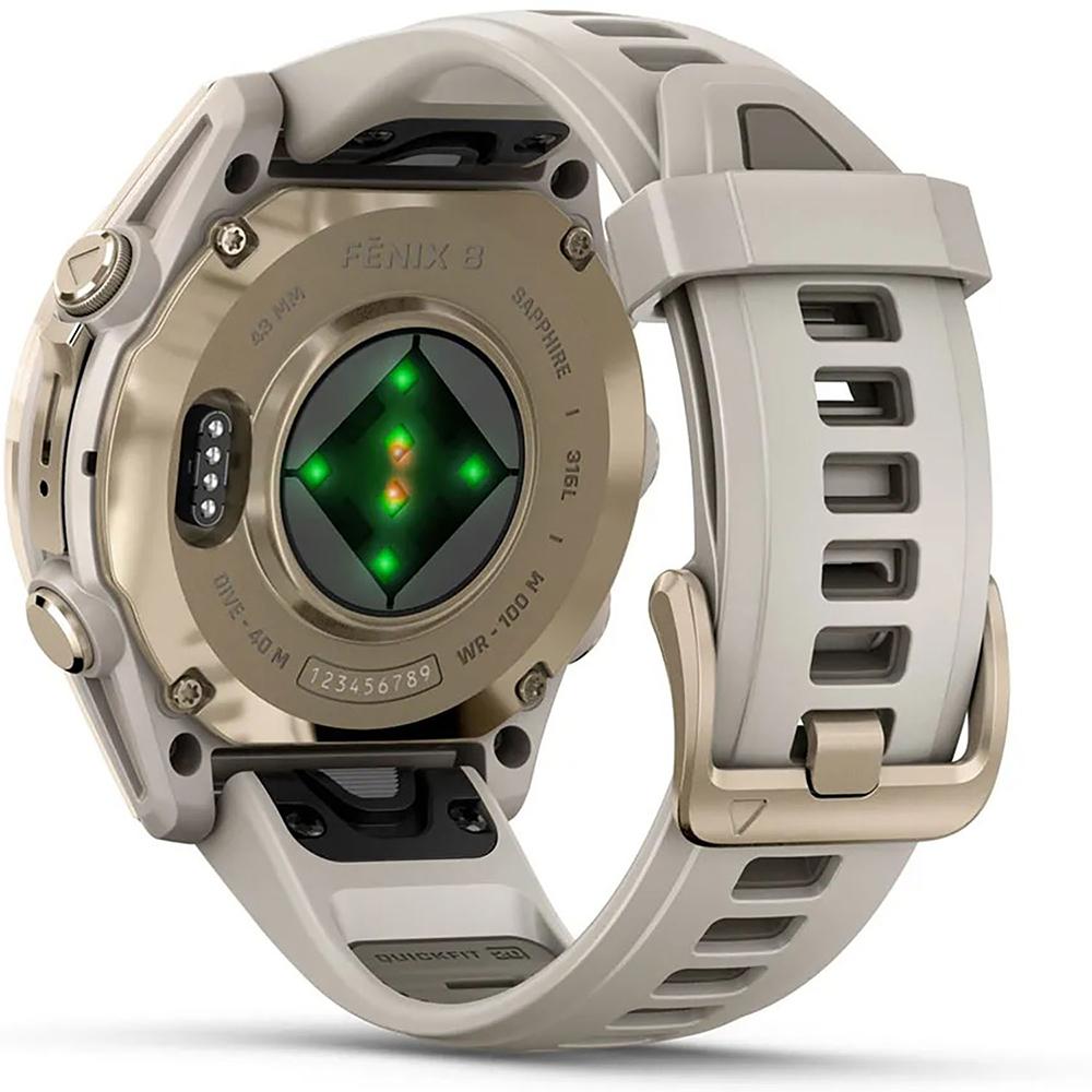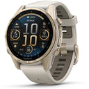- Garmin Fenix 8 43 mm, AMOLED, Sapphire, Soft Gold with Fog Gray Sandstone Silicone Band