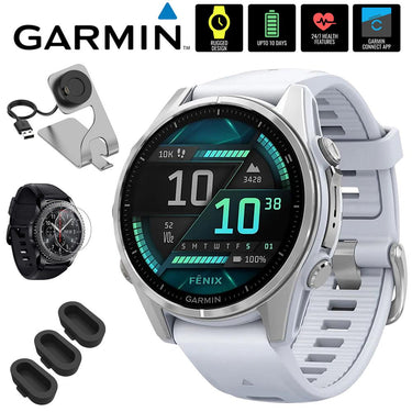 Garmin Fenix 8 43mm Smartwatch, AMOLED, Silver + Accessories Bundle
