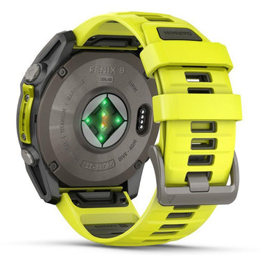 - Garmin Fenix 8 51mm, Solar Sapphire, Titanium with Amp Yellow/Graphite Silicone Band