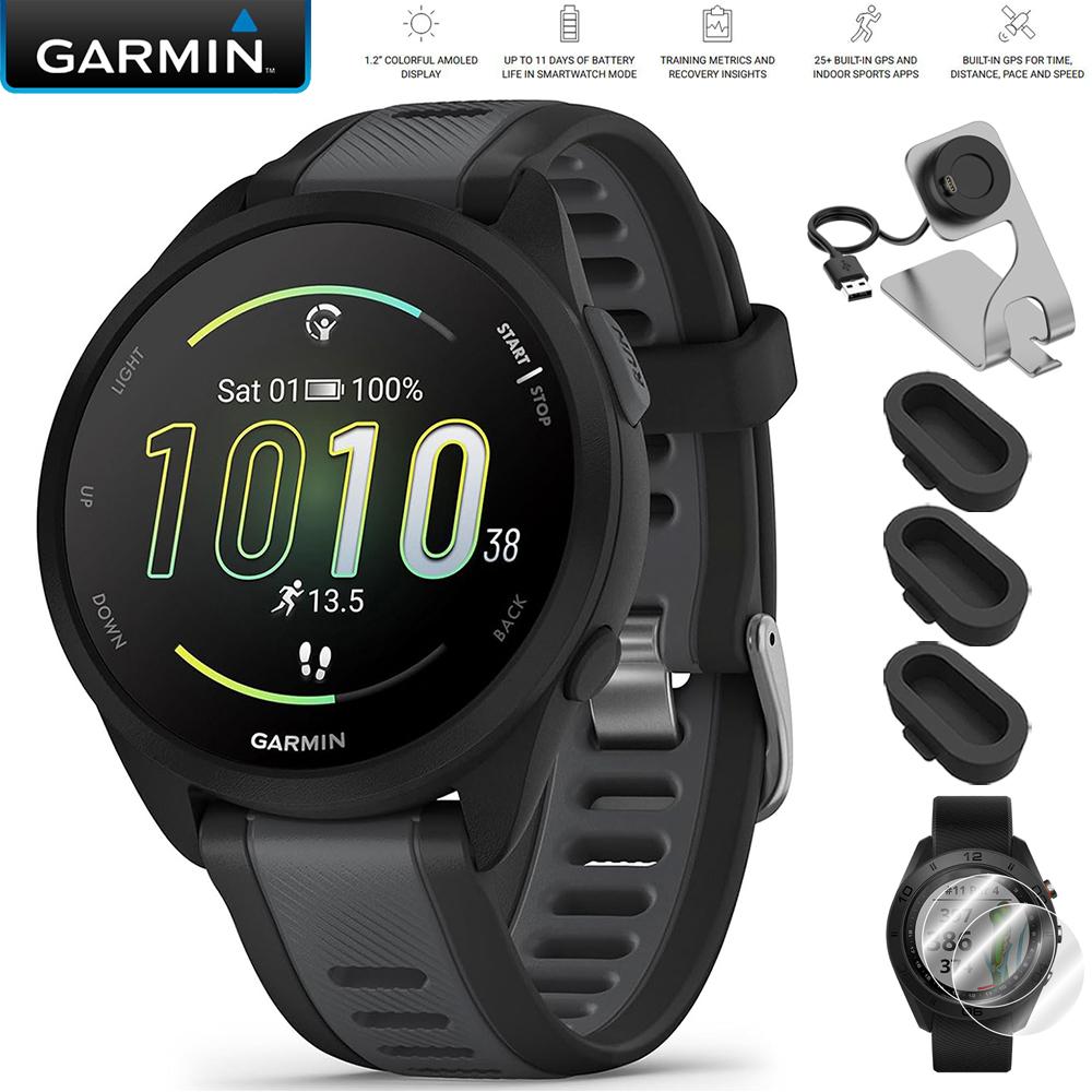 Garmin Forerunner 165 Smart Sport Watch Black + Gray with Charging Dock Bundle