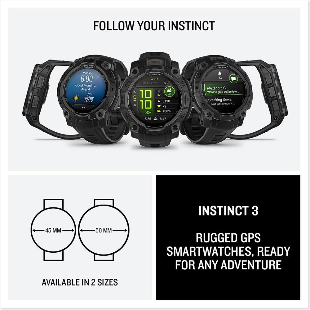 - Instinct® 3 – 45 mm, AMOLED smartwatch with silicone band