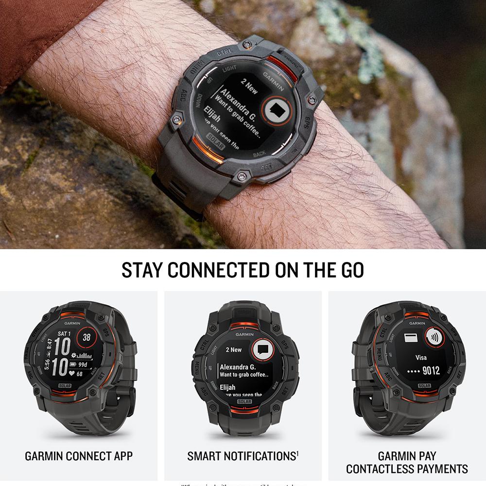- Instinct® 3 – 50 mm, Solar smartwatch with silicone band