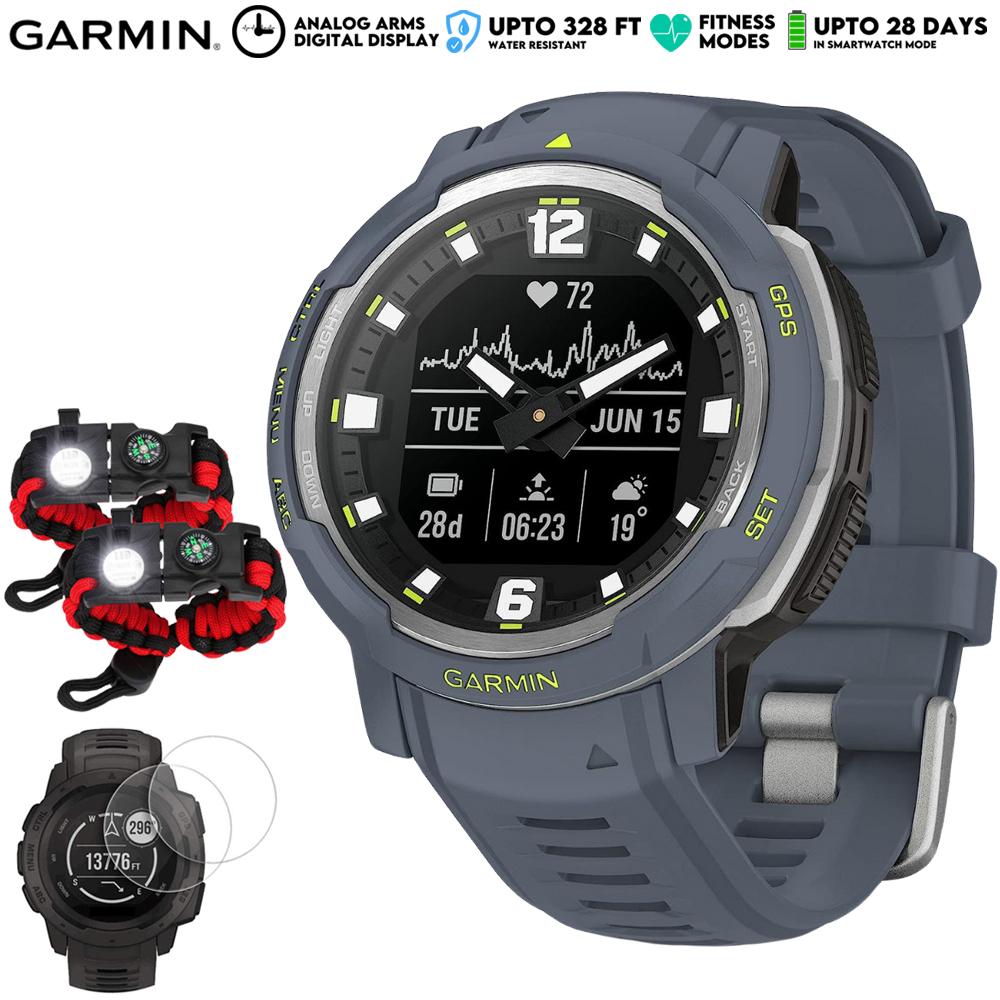 - Garmin Instinct Crossover Rugged Hybrid Smartwatch Analog Hands & Digital Display Blue Granite