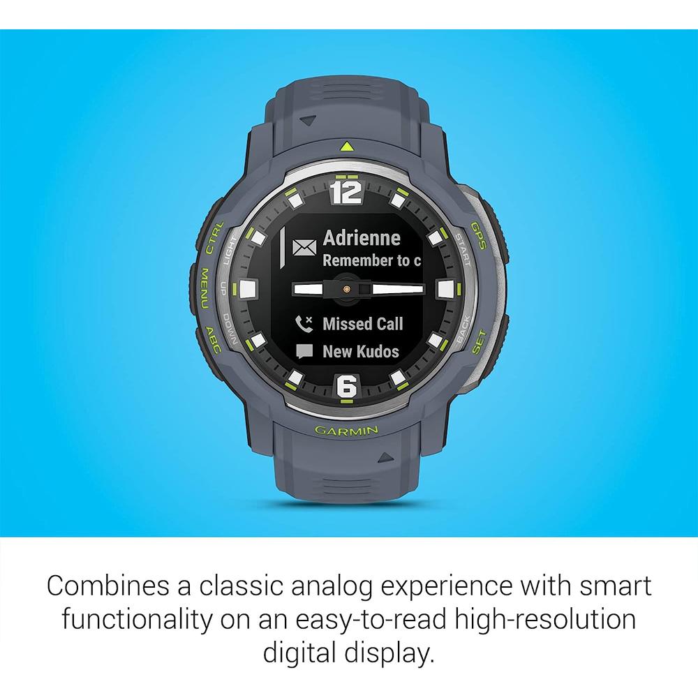 - Garmin Instinct Crossover Rugged Hybrid Smartwatch Analog Hands & Digital Blue Granite