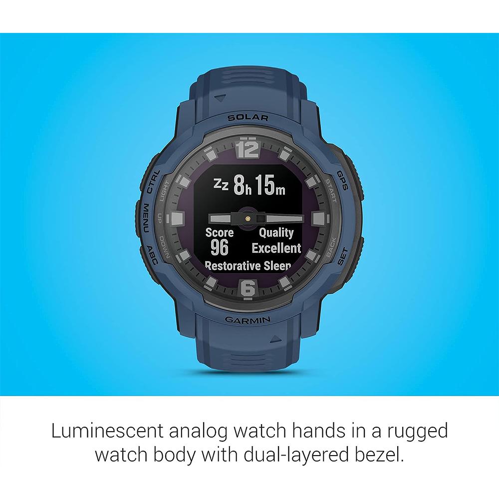 - Garmin Instinct Crossover Solar Rugged Hybrid Smartwatch with Solar Charging Tidal Blue
