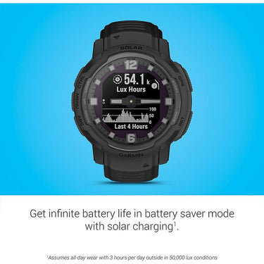 You’re busy blazing your own trail. So you need a watch that can hold a charge. How does infinite battery life in battery saver mode sound? Plus, get up to 70 days in smartwatch mode1 and up to 31 hours in GPS mode.