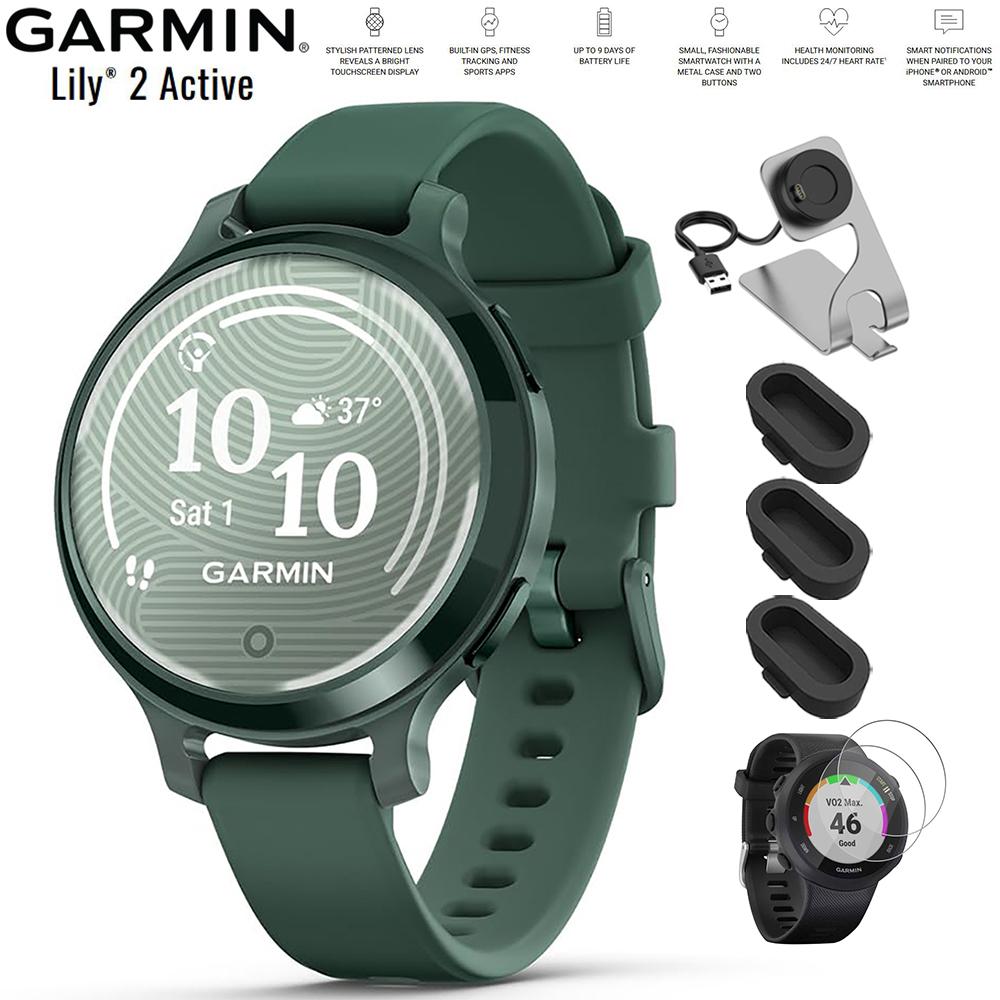Garmin Lily 2 Active Smartwatch Green with Green Band + Charging Dock Bundle
