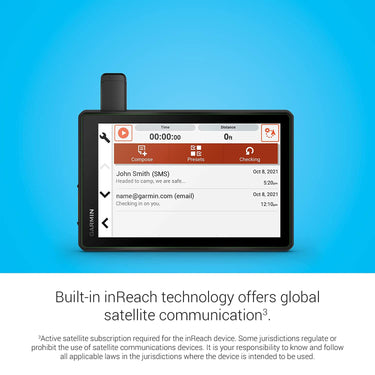 2 Active satellite subscription required for the inReach features. Some jurisdictions regulate or prohibit the use of satellite communications devices. It is your responsibility to know and follow all applicable laws in the jurisdictions where the device is intended to be used.