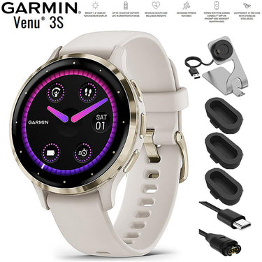 Garmin Venu 3S Fitness GPS Smartwatch Gold w/ Ivory Case 41mm + Charging Bundle