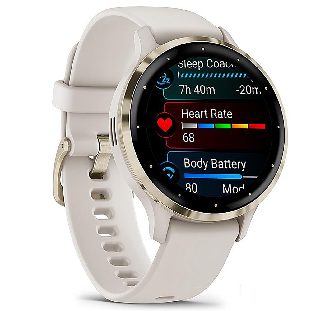 - Garmin Venu 3S Health Fitness GPS Smartwatch Gold Steel Bezel with Ivory Case 41mm