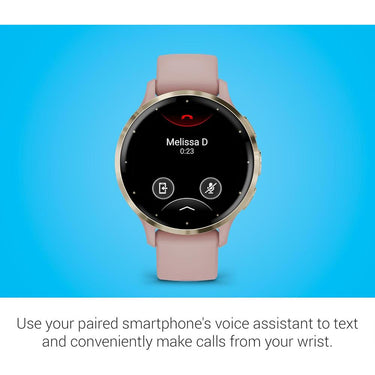 When paired with your compatible smartphone, make and take phone calls right from the watch. Plus, use your smartphone’s voice assistant to respond to text messages and more.