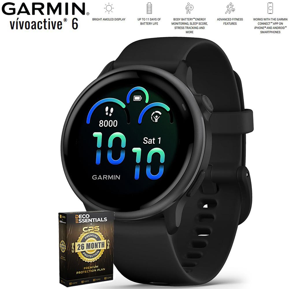 Garmin VIVOACTIVE 6 Fitness GPS Smartwatch Black with Band + 26 Month Protection