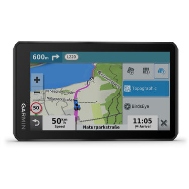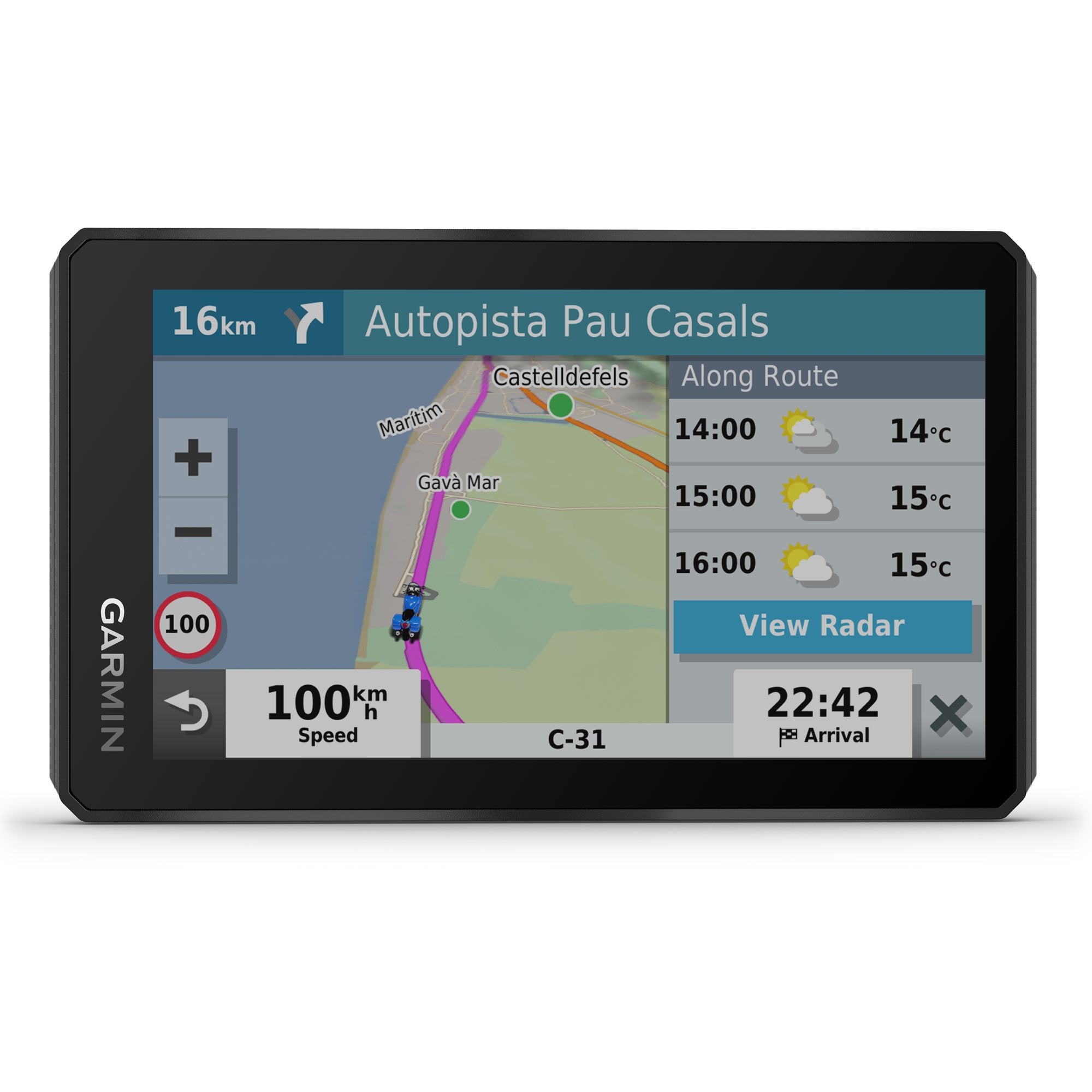 Access real-time traffic and weather, share routes with other riders, and get phone notifications via the Garmin Drive app.