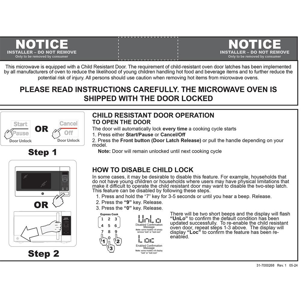 | Control Features | Start Child Lock-Out Cooking Complete Reminder Cancel/Off Power Level Kitchen Timer Clock - 12 Hr. Reminder Add 30 Seconds Weight & Time Defrost Time Cook |