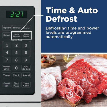 Complete your kitchen with this Countertop Microwave Oven by GE. This powerful countertop microwave features ten power levels and 0.7 cu. ft. of capacity, making it the perfect addition to your kitchen. When using the Auto & Time Defrost, the microwave automatically sets the optimal time and temperature. The add 30 seconds button allows you to add an extra 30 seconds to the cooking time.