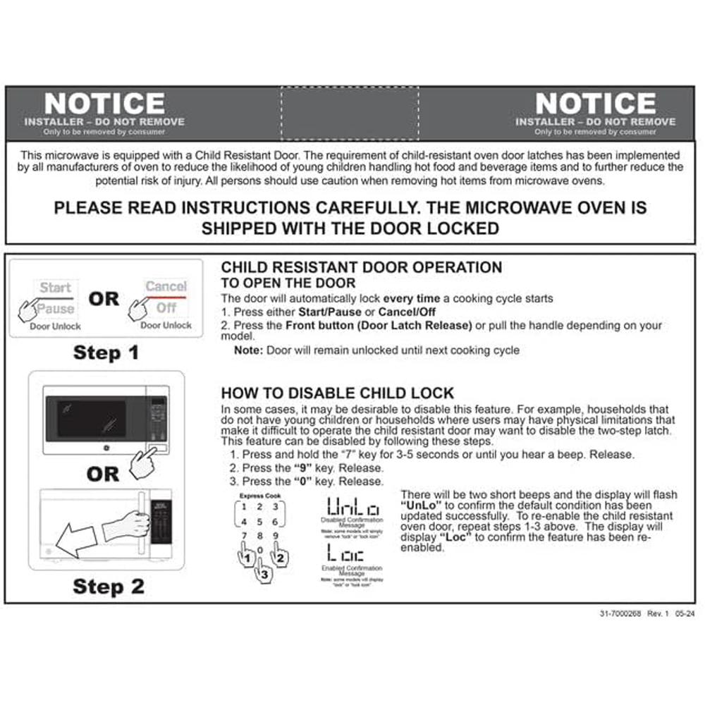 Add 30 Seconds Auto & Time Defrost Cancel/Off Child Lock-Out Clock - 12 Hr. Cooking Complete Reminder Express Cook - Instant-On 1-6 Minutes Sound On/Off Start/Pause Time Cook I & II Timer On/Off |