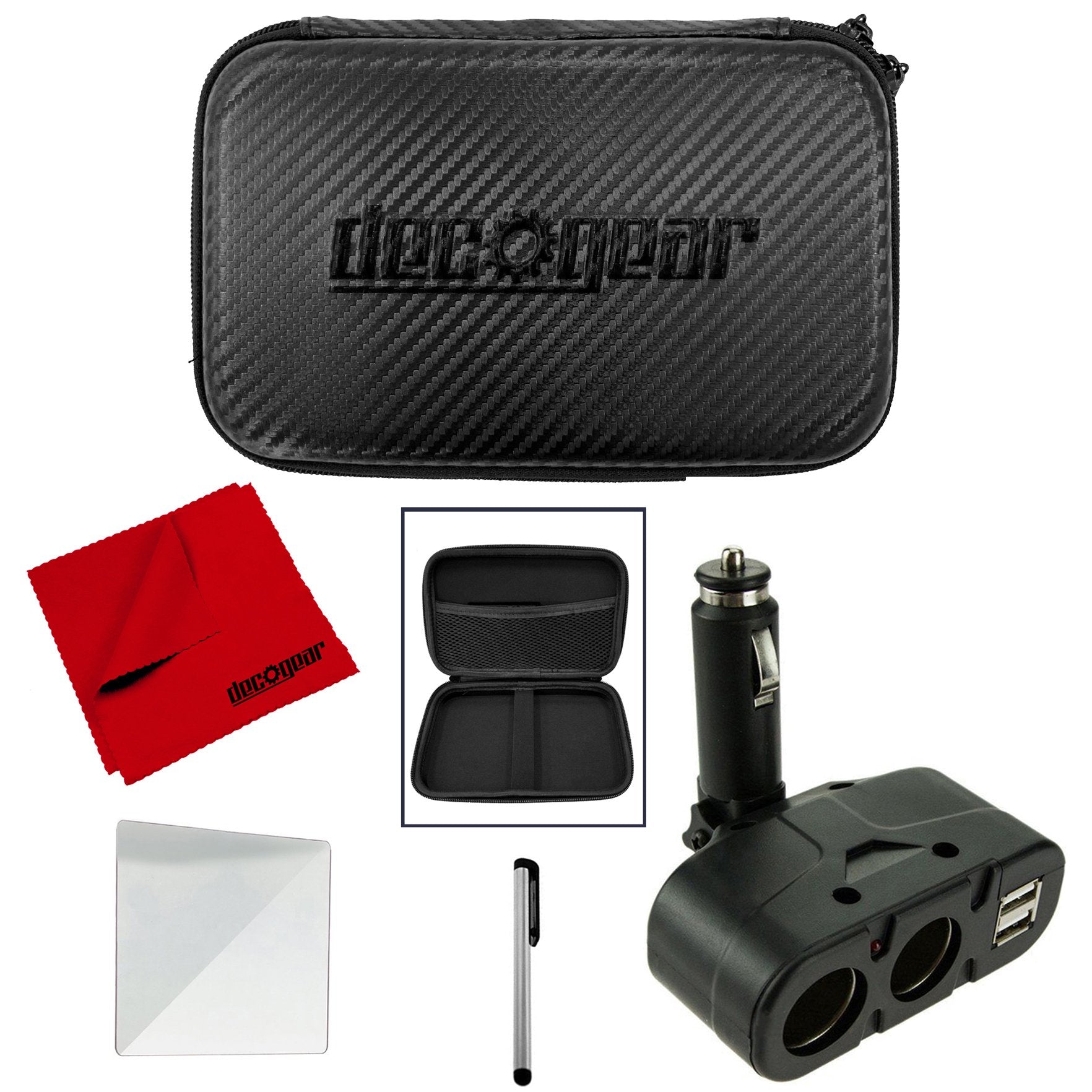 Hard 7" EVA Tablet/GPS Case, USB/DC Car Charger, Stylus, Screen Protector, Cloth