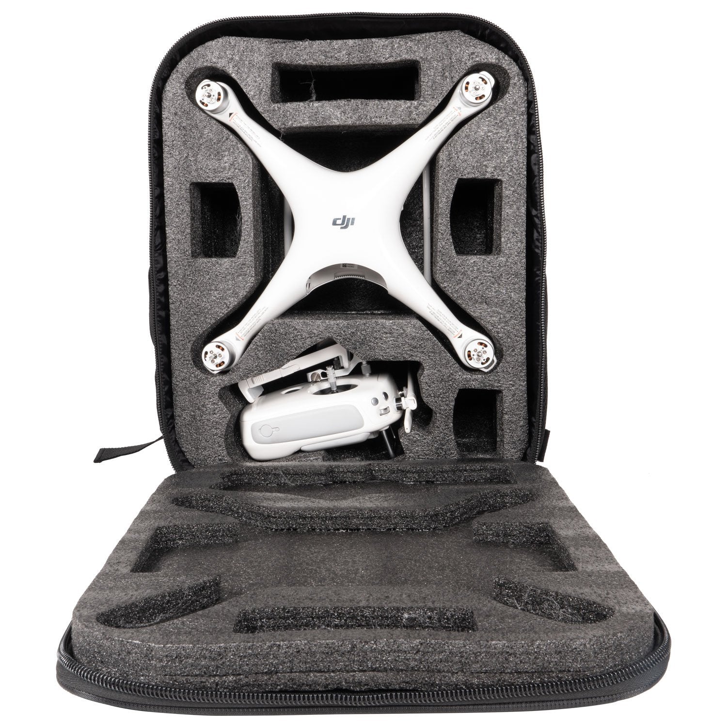 - Thick interior padding with foam inserts that were laser cut to fit the Phantom 4 drone and accessories