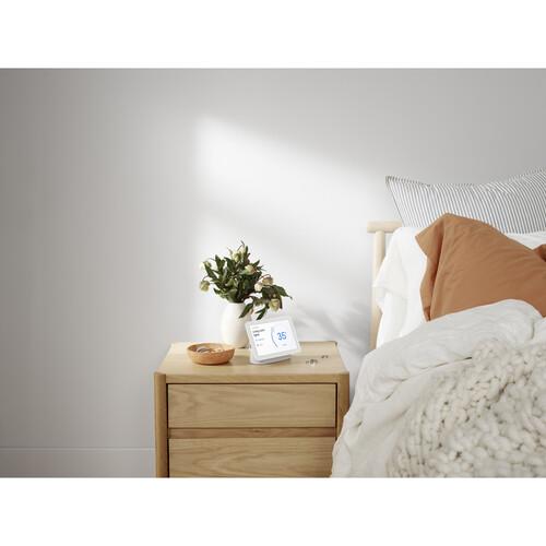 Nest Hub's simple design and subtle colors fit any room. The display adjusts to ambient room light, so it's not too bright or too dim. And it's built with the environment in mind ā 54% of its plastic part material is made with recycled content.
