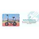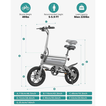 • šŸš²ć€Space-saving & Portable Design怑The GOTRAX 14" Electric Bike's folding handlebar design allows for effortless storage, making it a perfect choice for urban environments with limited space. Folded size: 46.4*19.3*26.8inch. The lightweight body enhances portability, allowing you to easily carry it on public transportation or store it in tight spaces.