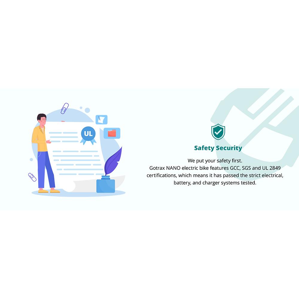 • šŸ“©ć€Easy Assembly and Safety怑The GOTRAX electric bicycle comes highly assembled, with instruction manual and installation tools. GOTRAX NANO is UL2849 certified and we put your safety first. If you encounter any problems, pls don't hesitate to contact us and we will offer you satisfactory after-sales service.