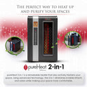 pureHeat 2-in-1 heats using a cutting edge PTC (Positive Thermal Coefficient) element that heats the air efficiently without drying it out. It purifies your air with PCO technology that features a high power germicidal UVC bulb. This bulb creates a purifying plasma that reduces mold, bacteria, and viruses (even on surfaces) so the months spent with doors and windows closed no longer means months spent in a stuffy indoor environment.