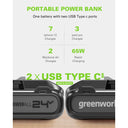 - Removable battery powers over 150 Greenworks 24-Volt tools.