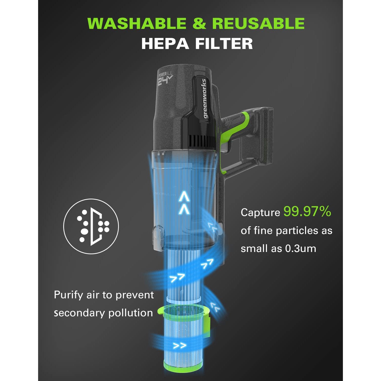 - Greenwork 24V Cordless Battery White Stick Vacuum