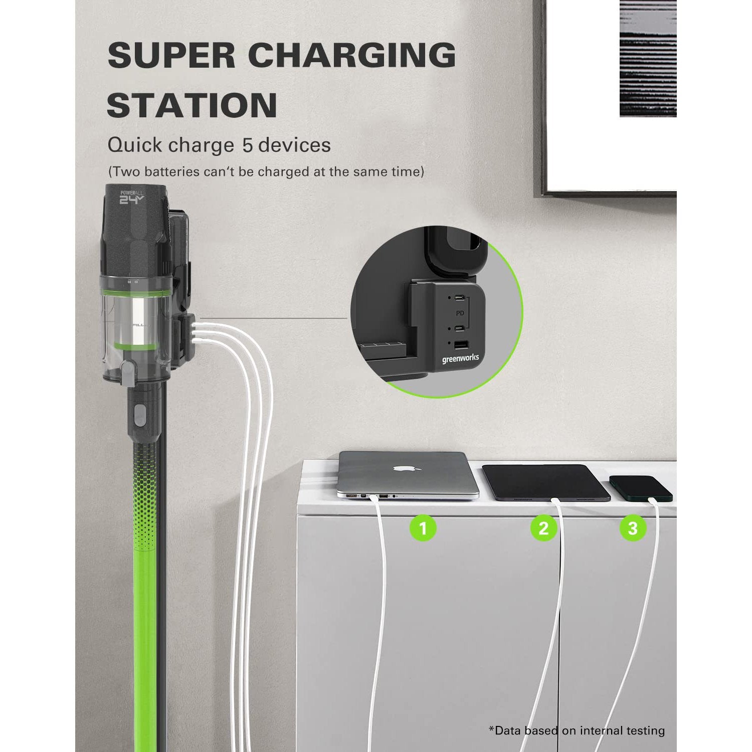 Greenworks 24V Cordless Battery Green Stick Vacuum w/ 4.0Ah USB-C Battery & Charger