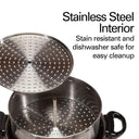 Stainless Steel Interior Resists stains and buildup for easy cleaning. Removable parts are dishwasher safe.