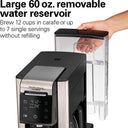 Five Brewing Options: Brew a single cup with pods, a single cup with ground coffee, full 12-cup carafe, strong brew mode, or iced coffee.