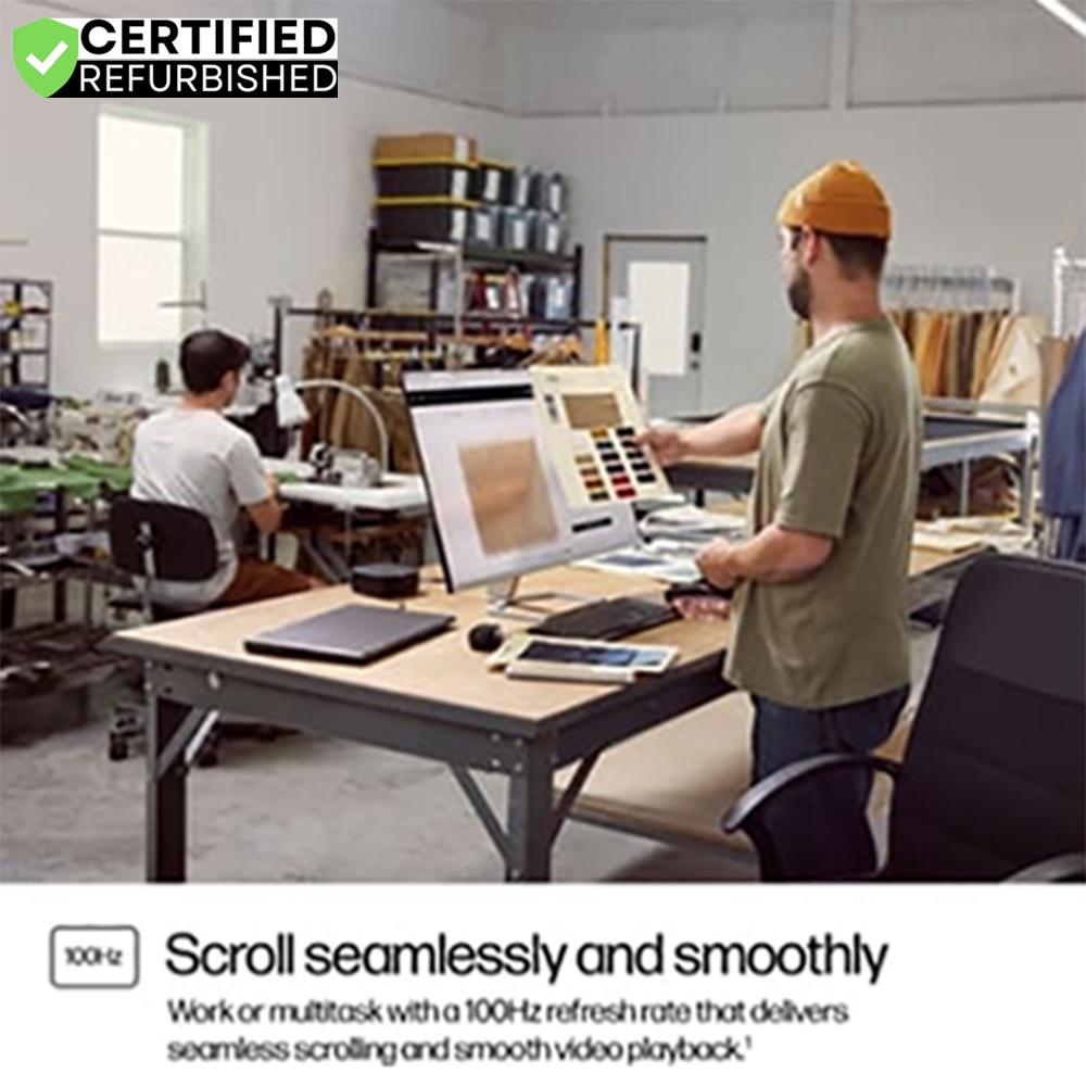 Sit back and soak in all the content you love with this exceptional 23.8" FHD monitor. Experience colorful imagery and vibrant detail like they were intended with 99% sRGB color, deep 1500:1 contrast ratio, and 300 nits brightness. Its 100 Hz refresh rate delivers seamless scrolling and smooth, stutterfree viewing.