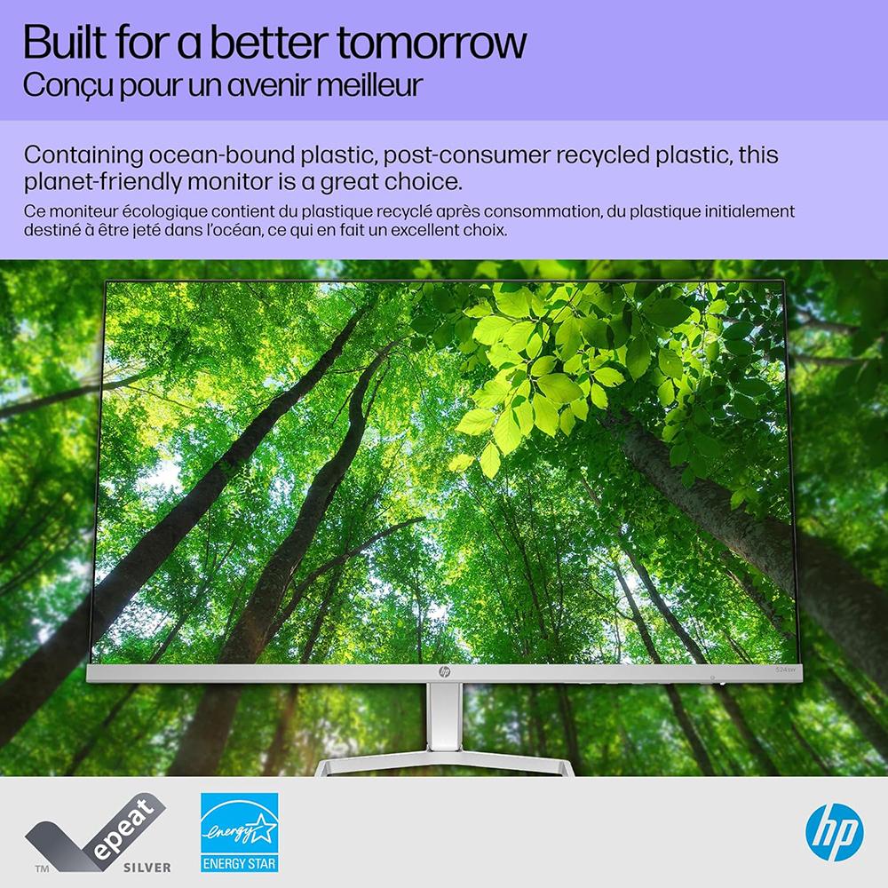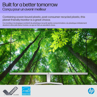 The better choice for a brighter tomorrow, these HP Series 5 monitors are built with a design using 85% recycled materials and 5% ocean-bound plastics to help reduce the raw materials we use. With 100% sustainably sourced packaging and an EPEAT Silver Registered and ENERGY STAR Certified design, you can be confident knowing you have a monitor that does good things for the planet while doing amazing things for you.