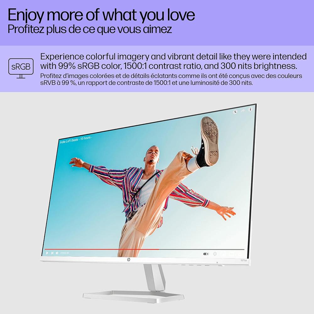 Get lost in any passion project with the HP Series 5 27-inch FHD Monitor with Speakers. Its sleek design with integrated dual 2W audio gives you the flexibility to fully enjoy your entertainment, and its vibrant color and deep contrast ratio lets you see everything as it was meant to be seen. Enhance your screen time and your pastime with a higher refresh rate for a screen-tear-free experience.