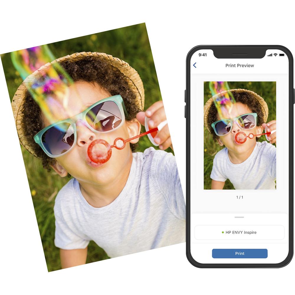Add a custom message with two-sided 4"x6" (10x15cm) photo printing from the HP Smart app.