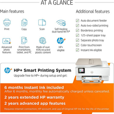 Work, learn and create with the printer that prints everything so you can tackle anything - from high-quality photos to documents. Choose HP+ and get the smart printing system that keeps you connected and ready to print from virtually anywhere.