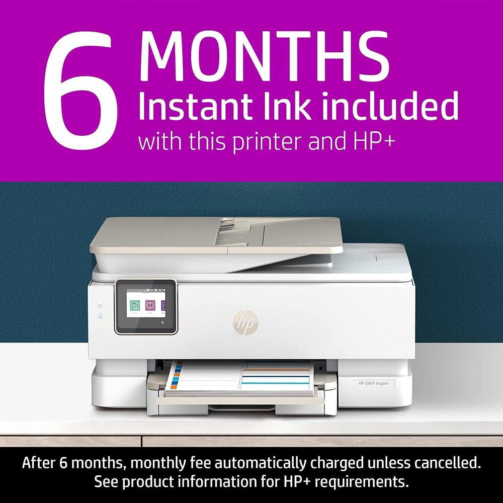 What's In the Box: HP ENVY Inspire 7955e All-in-One Printer, HP 64 Setup Black Instant Ink Ready Cartridge, HP 64 Setup Tri-Color Instant Ink Ready Cartridge, Ink Caution Flyer, Regulatory Flyer, Setup guide, Reference guide, HP Advanced Glossy and Matte Photo Inbox pouch, Power cord (For ink volume and page yield information, visit HP's website)