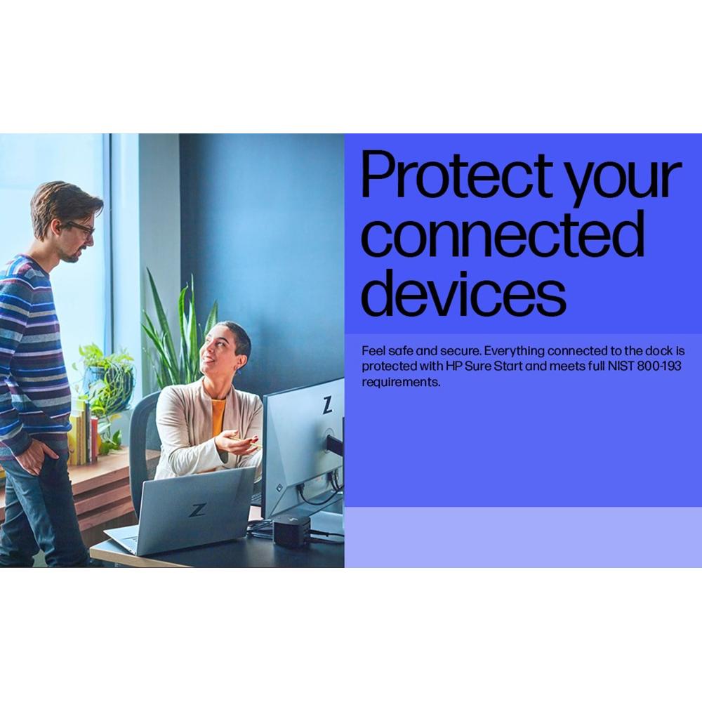 Feel safe and secure from the moment you log in. The HP Thunderbolt G4 Dock with HP Sure Start prevents hackers from using the dock to attack the network and the attached notebook. Everything connected to this dock is protected and meets full NIST 800-193 requirements.