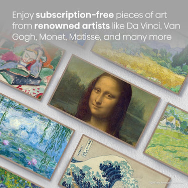 Admire your favorite works of art without the glare. A special, low reflection coating enhances your masterpiece-viewing experience by giving the digital artwork the depth and texture of real paintings.