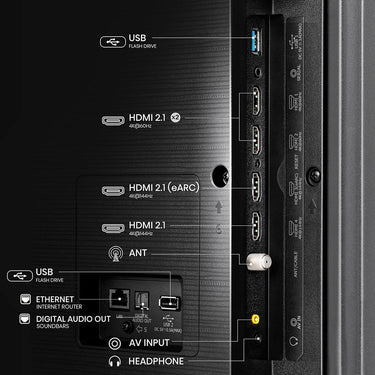 Number of HDMI Inputs (Total)4Display Connector(s)1 x Composite video, 2 x HDMI 2.1, 2 x HDMI 2.0, 1 x Composite videoNetwork Connector(s)1 x LANAudio Only Outputs1 x Optical digital audioUSB Ports1 x USB-A 2.0, 1 x USB-A 3.0HDMI Audio Return Channel (ARC)eARCWireless ConnectivityWi-Fi, BluetoothTV Tuner TypeATSC 3.0 (NextGen TV)RF Antenna InputYesNumber Of USB Port(s) (Total)2Bluetooth Version5.3 -