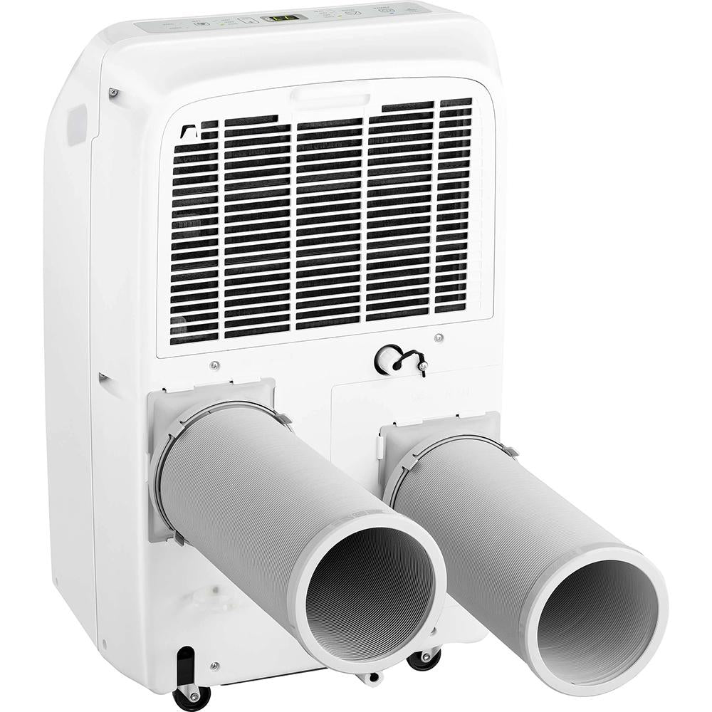 for flexible usage all year long - Cool and heat mode for all year long - Fan mode for better air circulation - Dehumidifier mode to remove excess moist. Dual hose cools down more efficiently by balancing air pressure